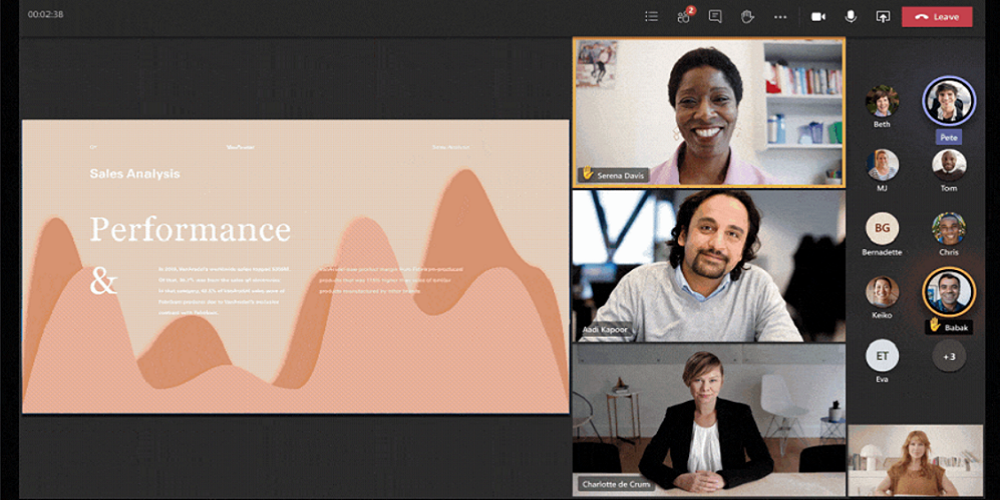 De dynamische weergave reageert op intelligente wijzen op alle elementen in de een vergadering. De lay-out wordt van Teams wijzigt automatisch wanneer mensen starten met deelnemen, video wordt ingeschakeld of als deelnemers een presentatie starten. Op deze manier zorgt Teams ervoor dat je continu een optimale kijkervaring hebt.